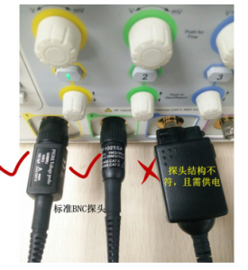 圖3的無源探頭可用于大部分示波器的信號輸入,圖4的探頭因為在結構上設計獨特,且其需要供電,所以僅適用于與其兼容的示波器輸入。
