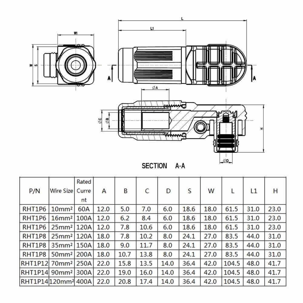 標(biāo)簽:儲(chǔ)能連接器,彎式,插頭和插座,6mm,紅色,IP65,60A,帶孔銅牌