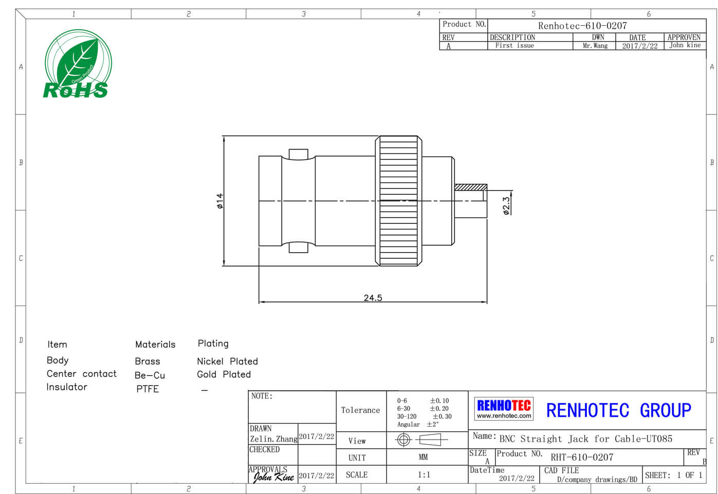 | 電壓駐波比 | 直式 ≦ 1.22/3GHz / 彎式≦ 1.30/3GHz |