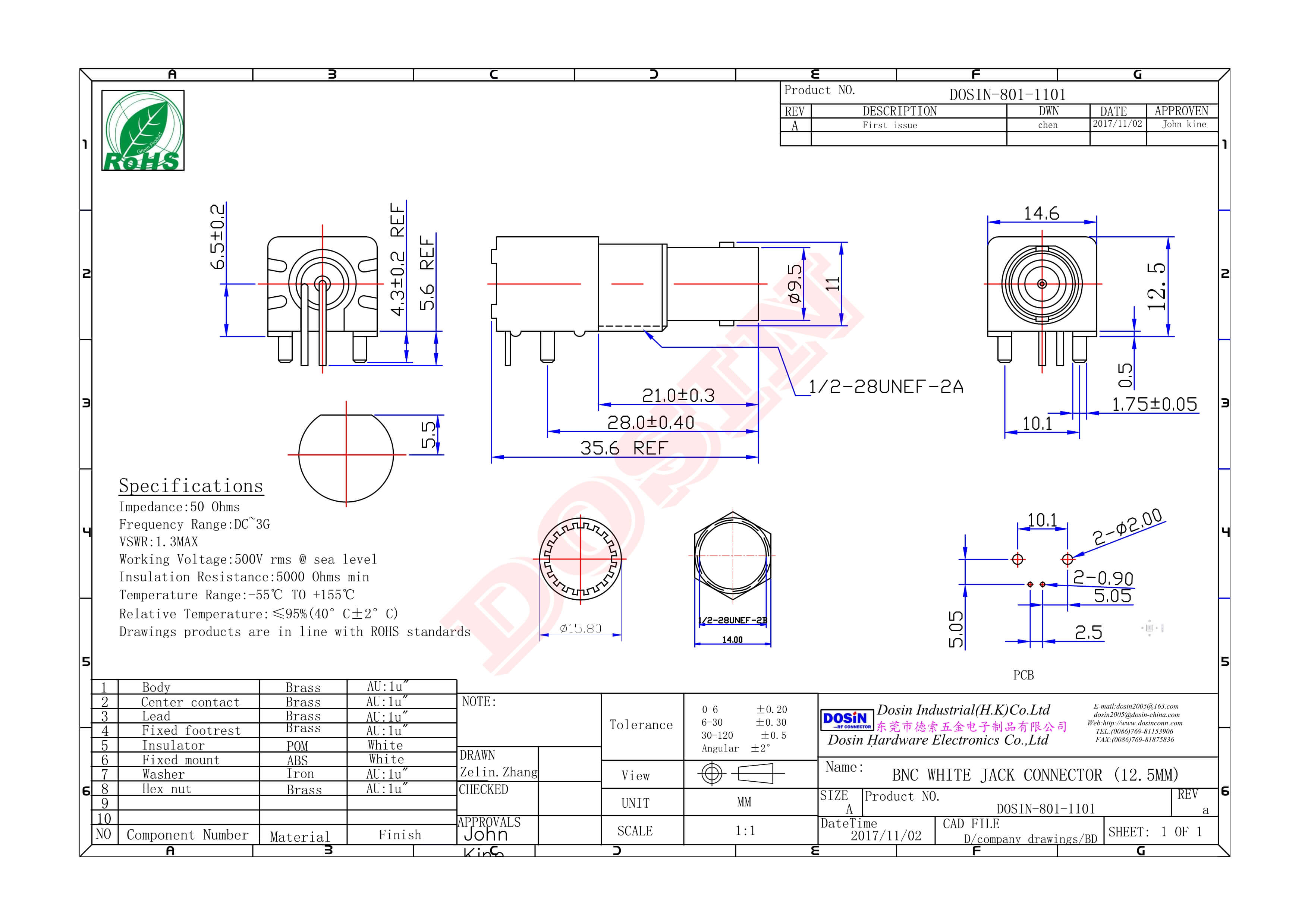 | 阻抗 | 50 ohm |