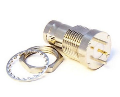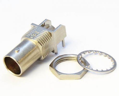 PCB插板式BNC插座母頭90度連接器前鎖穿墻鍍鎳