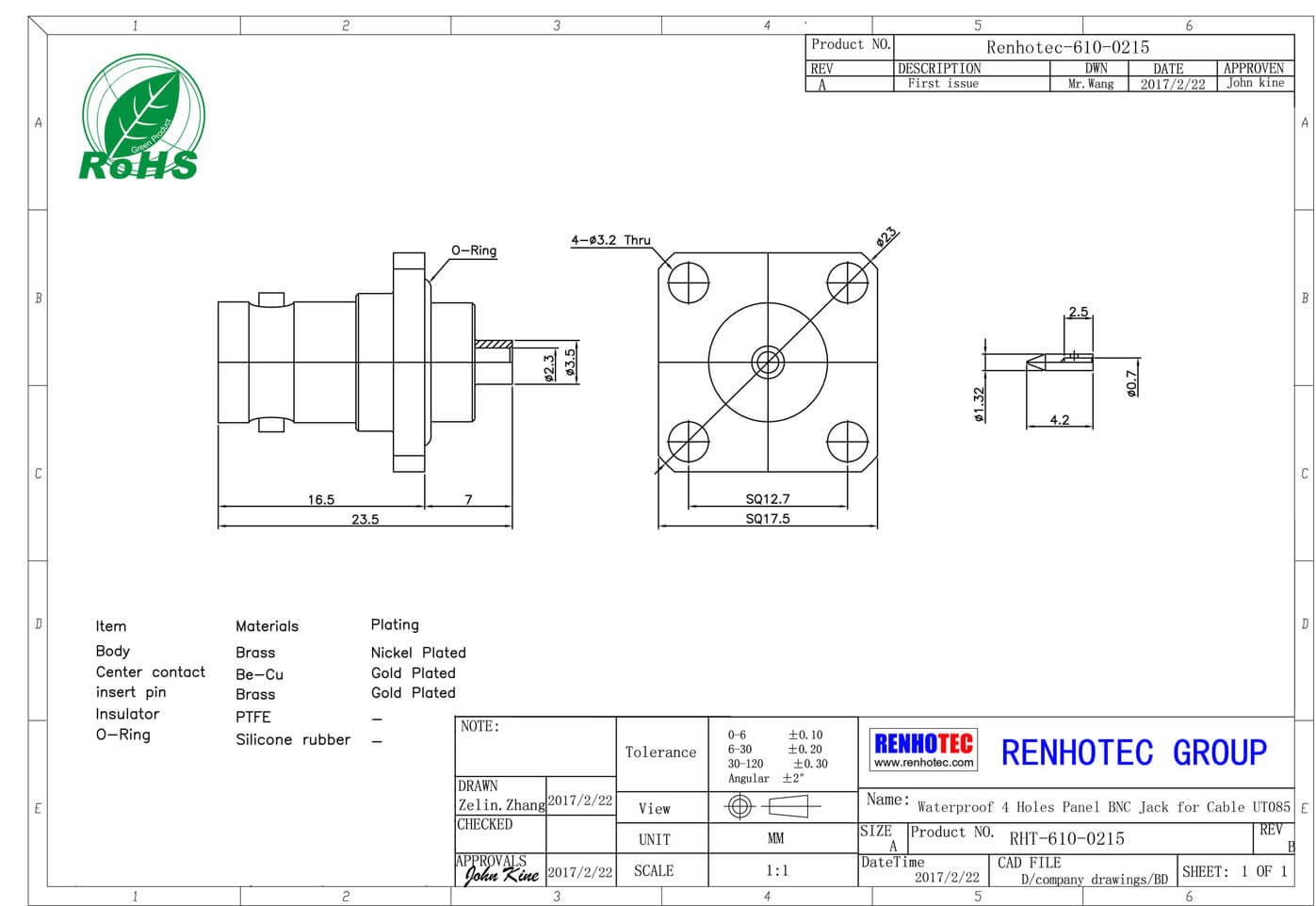 The post 4孔方形法蘭直式母頭鍍鋅防水BNC同軸線纜連接器 appeared first on BNC接頭網(wǎng).