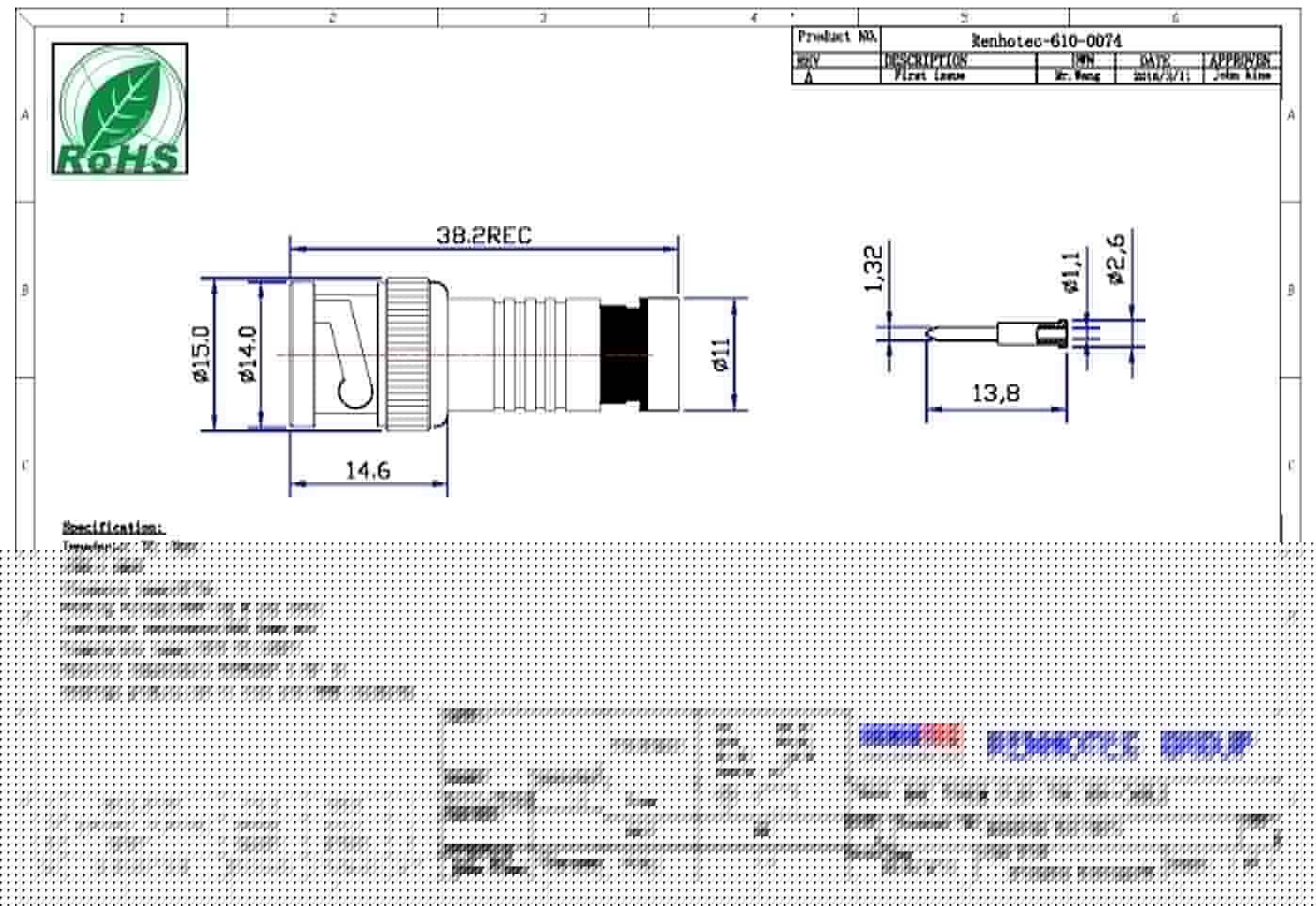 | 電壓駐波比 | 直式 ≦ 1.22/3GHz / 彎式≦ 1.30/3GHz |